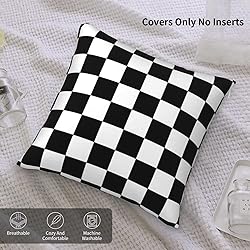 Polyester 【Skin-friendly fabric】checkered pillow covers are made of high-quality pure cotton fabric, which is delicate and soft to the touch, bringing a comfortable experience like baby skin, so you don’t have to worry even if your family members are in close contact.checkered pillow cases are made of high-quality materials with better breathability. You won’t feel stuffy even if you lie on them in the summer, and you won’t feel cold even if you hug them in the winter. 【Perfect size】checkered pillow cases are the perfect size of 45x45 cm (18x18 inches), which can be easily matched with sofas, armchairs, dining chairs, curtains, beds and garden lounge chairs to highlight the style of your home.checkered pillow covers are stylish and modern color design, adding a touch of chic charm to your space and instantly improving the overall decoration taste. 【Easy to clean】black and white pillow covers can be machine washed in cold water, gentle mode, and tumble dried at low temperature! High-density fabric technology is used, and it is not easy to deform or fade after multiple machine washings. Say goodbye to tedious hand washing, saving time, labor and worry, saving you housework time, and maintaining a clean and hygienic environment. 【Reasonable matching and design】Includes 2 stylish cushion covers with a variety of personalized patterns to choose from, easy to match with all kinds of bedding and furniture. pillow covers adopt invisible zipper opening and closing design, which makes it more convenient to fill the pillow core, beautiful and generous. Note:black and white pillow cases do not include pillow cores, allowing you to freely match your favorite liner and create a personalized home style as you like! 【Best choice】black and white pillow covers are the perfect finishing touch to enhance the American home atmosphere! Whether it is a country-style living room, a modern and simple bedroom, or a backyard patio sofa, they are perfectly suitable. black and white pillow cases are the first choice for gifts. They are given to neighbors, friends, and any family members who need pillow covers. They will definitely be very happy.