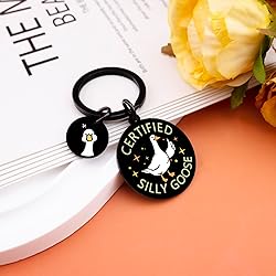 - "Certified Silly Goose" Keychain – The Perfect Whimsical Gift for Goose Lovers & Humor Enthusiasts.Bring laughter and lighthearted joy to any occasion with this delightfully quirky "Certified Silly Goose" keychain. Perfect for birthdays, holidays, office white elephants, or spontaneous "just because" surprises, this goose-themed keychain is a versatile and universally appealing gift. It’s an excellent choice for friends, family, coworkers, or even your boss—adding a touch of humor to keys, backpacks, or purses. Whether you're celebrating Christmas, Easter, Halloween, or just looking for a fun way to brighten someone’s day, this silly goose charm delivers endless amusement.