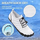 Superior Barefoot Protection for Water Adventures:These hike barefoot water shoes women and men feature a five-toe guard design to protect against sharp rocks, coral, and hot sand. The quick-adjust bungee laces ensure a secure, custom fit while keeping sand and pebbles out. Perfect for barefoot hiking shoes women and men, snorkeling, river hiking, and beach combing—stay safe without sacrificing freedom! True Toe Freedom – Lightweight & Breathable:The barefoot shoes men/women wide toe box is easy for instinctive foot movement. The quick-dry mesh fabric keeps feet cool and prevents blisters, while the flexible sole mimics grounding. Perfect for grounding shoes for women/men, swim, yoga, and beach runs! Unshakable Grip on Wet & Rocky Terrain: The barefoot water shoes for women and men with 11 drainage holes ensure quick drying on slippery rocks or pool decks. The non-slip rubber sole provides superior traction for hike barefoot water shoes men and women, kayaking, or river hikes. Includes removable cushioned insoles for fatigue relief! Your Perfect Partner for All Adventures: With barefoot water shoes women and men, from snorkeling, kayaking, waterfall hiking, river rafting, beach walking, fishing, camping, trekking, jogging, running, yoga to gym workouts—these river shoes women and men handle it all! Available inmens and womens water shoes size for every adventurer, whether you're tackling rapids or strolling along the shore. From Ocean to Street – No More "Ugly Water Shoes":Upgrade your style with these sleek barefoot water shoes wide width in trendy colors. These beach shoes women and men transition seamlessly from ocean to urban adventures. Ditch clunky designs for a modern, functional look!