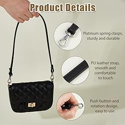 Size: You will receive 2pcs bag strap, the size is about 12mm wide and 60cm long, the platinum color clasp size is about 38.5mm long, 29mm wide and 7.5mm thick. Longer length, can be carried on one shoulder. Easy to Use: The leather straps are very easy to install and remove, simply remove the old straps from the bag and clip the alloy buckle onto the bag. No sewing is required and it can be removed at any time. PU Leather Material: The handle of the bag is made of imitation leather, connected with alloy swivel buckle, sturdy and durable, not easy to break or discolour and deform, soft and comfortable for long time use. Wide Use: It can replace your old bag straps that you don't like or broken, such as purses, handbags, wallets, underarm bags, etc. It is also suitable for DIY bag making and so on. Ideal Gift: Black simple and atmospheric bag replacement straps can match any bag. You can give it to your friends and family, teachers and classmates on Christmas, Thanksgiving, Mother's Day, Teacher's Day, Birthday, Housewarming and other occasions to express your good intentions.