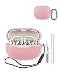 Case for SHOKZ OpenDots ONE Earbuds,Soft Protective,BOVUGAC Silicone Case Cover with Keychain & Cleaning Kit & Lanyard for SHOKZ OpenDots ONE E310 Accessories-Pink