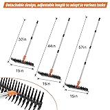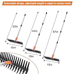 Maintaining Garden Health & Aesthetics: Lmaytech lawn thatch rake is designed to effectively remove thatch layers, cleaning up fallen leaves, branches...which allows the lawn to absorb air and sunlight more effectively, promoting its healthy growth. Perfect for the garden, farm and yard. You can also use it to loosening soil, lay sod, spread organic matter, clean up flower beds or maintain paths. Upgraded Double Edged Rake: The garden rake with 2 types of steel tines, no need to change tool frequently. One edge has sharp tines for separating debris from the dirt, providing a better growth environment for grass roots, and the other edge is more intended for scooping free leaves/grass/roots for collection. Comes with leaf bag and anti-slip elastic gloves to greatly improve work efficiency. Premium Construction & Excellent Quality: Made from high-quality durable stainless steel, offering higher strength and resistance to deformation after the quenching process. Meanwhile, it treated with 3 coatings for rust and corrosion resistance. The ergonomically designed detachable handle making it easy to work and relieve your back strain. Suitable for long-term use. Reusable Yard Waste Bag & Non-slip Elastic Gloves: The waste bag is made from woven polypropylene, which known for its tear resistance, stress resistance and water resistance. These features make it ideal for use as trash, compost and lawn bag, the reinforced nylon handles make dumping a breeze. Equipped with gloves will greatly help in collecting yard and garden waste. Easy Assembly & Versatile: The handle is made up of 4 sections. Just simply rotate and tighten the required number of handle sections, making it suitable for people of different heights. The 2 types of multi-functional steel tines design make it a must-have tool for lawn management and yard maintenance - ensuring your outdoor space stays pristine year-round.