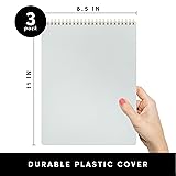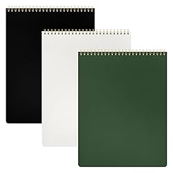 TOP BOUND SPIRAL NOTEBOOKS: Set of 3, lined 8.5 x 11 in. note pads, each featuring 70 sheets (140 pages), sturdy gold spiral binding & durable plastic cover in a trio of vibrant assorted colors. Perfect to use as journaling notebooks or legal pads. PREMIUM PAPER: Made with high-quality, 75gsm, wide-ruled acid-free paper with a left side double-line margin. Lines on both sides of each sheet. Our writing pad paper is thicker than the average writing tablet for smooth writing with less ghosting. STURDY THICK BACKING: Each spiral notebook includes a thick, strong cardboard backing for extra support when writing. More substantial than most note pads or steno pads. Available in 3 or 6 packs for the ideal work from home or studying essentials. PERFORATED PAGES for easy removal. From desk to on-the-go, take your grocery list with you, transfer notes from home to office or stash that to-do list in your bag. Pages measure 8.5 x 10.5 in. when removed. PREMIUM OFFICE DESK ACCESSORIES & SUPPLIES: We're committed to bringing you high-quality products at a price you'll love with fresh & colorful takes on office supplies, notebooks & writing pads. Bring your next big idea to life with PAPERAGE!