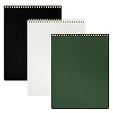 PAPERAGE Top Bound Spiral Notebook, 3 Pack, Lined Notepad, (Black/Dark Green/Grey), 70 Sheets (140 Pages) Per Notebook, Wide/Legal Ruled, 8.5 inches x 11 inches