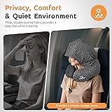 Joytential Travel Neck Pillow with Large Hood for Long Flights, Privacy Hooded Plane Pillow with Skin-Friendly Cover, Memory Foam, Travel Pillows for Road Trip, Airplane, Office Rest (Grey)