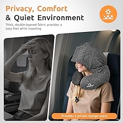 Privacy and Comfort: This travel neck pillow offers personal privacy with a large hood that protects you from bright lights and unwanted attention. Perfect for flights, trains, or anywhere you need to rest while traveling without an extra eye mask. Skin-Friendly Cover and Premium Memory Foam: The cover of the travel pillow is breathable and skin-friendly , soft to the touch, and easy to remove and wash to keep your pillow fresh after traveling. The interior is elastic premium memory foam, which helps reduce fatigue, provides extra comfort and 360° neck support for traveling. Adjustable Fit Drawstring:With the adjustable drawstring of the travel neck pillow, you can adjust the fit to your size for improved comfort as well as better support, which ensures an excellent traveling experience. Compact Size Design: This airplane pillow with hood is lightweight, easy to roll up and put in your carry-on bag, making it a nice choice for long flight travel. Note: Due to the compact packaging, the pillow may appear flat when you first take it out of the storage bag, just let it sit for a while and it will return to its fluffy shape. Multi-Scenario Travel Companion: This travle pillow is suitable for traveling by plane, car, train or bus, watching TV, reading, snoozing in the office, providing effective support and comfort