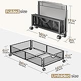 [Quality Metal Container] Skip the flimsy plastic or fabric under bed storage bins that tear easily. Our all-metal under bed storage containers feature a reinforced mesh design with smaller openings, providing superior strength. Plus, the entire frame is welded into one solid piece, ensuring sturdiness and durability—offering you long-lasting, reliable storage space [360° Rotating Silent Wheels] Under bed rolling storage features 4 smooth-gliding 360° rotating wheels, two of which include a locking function. Simply engage the locks with a gentle press to keep the unit securely in place when needed. It effortlessly glides across both hard floors and carpets, even when fully loaded [Foldable Design] Foldable under bed storage containers collapse to just 4 inches thick when not in use, making them ideal for tucking into tight spaces like closets. No more bulky bins hogging room. Keep your bedroom tidy without sacrificing storage capacity [Tool-free & 1-Minute Assembly] Tired of complicated underbed storage assembly? We've simplified it into just 2 simple steps: Snap the four wheels onto the frame, then place the shelf on top—no tools needed. In less than a minute, your under bed storage with wheels is ready to use [Wide Application] Yecaye underbed storage drawer is a versatile space-saving solution for storing shoes, clothes, and more. Designed to maximize unused space, under bed drawers on wheels slide effortlessly under beds, sofas, or tables—perfect for small apartments, dorms, and clutter-free homes