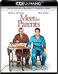 - Male nurse Greg Focker (Ben Stiller) is all set to propose to his girlfriend, Pam (Teri Polo), during a weekend at her parents' home. But there's a catch: Jack Byrnes (Robert De Niro), Pam's intimidating, cat-loving, ex-CIA father, takes an immediate dislike to his daughter's truth-bending beau. Soon, a hilarious string of outrageous mishaps turns Greg into a master of relative disaster. Meet the Parents is an uproarious comedy smash that bombards you with one laugh after another! Bonus Content: Includes 4K UHD, Blu-ray and a digital copy of Meet the Parents (Subject to expiration. Go to NBCUCodes.com for details.)Features Dolby Vision and HDR10 for Brighter, Deeper, More Lifelike ColorSpotlight On LocationDeleted ScenesOuttakesDe Niro UnpluggedThe Truth About LyingSilly Cat TricksJay Roach: A Director's ProfileTheatrical TrailerFeature Commentary with Director Jay Roach and Editor Jon PollFeature Commentary with Cast Members Robert De Niro and Ben Stiller, Director Jay Roach and Producer Jane RosenthalFeature Commentary with Cast Members Robert De Niro, Ben Stiller, Director Jay Roach and Producer Jane Rosenthal