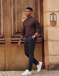 Comfortable Fabric: Men's Half Turtleneck Sweater with soft, lightweight and stretchy fabric, making it easy to wear all day, suitable for fall to spring seasons Fashion Design: This men's long-sleeved pullover features a unique half turtleneck design, knitted fabric, slim fit, solid color, and non-bulky thermal insulation keeps you cozy without sacrificing sleek style Layering Essential: The basic long-sleeved knit tee is perfect for fall through early spring, which can be worn with slacks, sweatpants, jeans or other trousers; it can also be used as an inner layer of a jacket, with shirts, jackets and suits, etc Suitable Occasion: This mock turtleneck sweater is suitable for casual occasions, everyday wear, parties, dates, vacations, sports, work, business meetings, pajamas, any grand festival or event, etc. It is one of the must-have items in a man's wardrobe, which can show off your personality Worry-Free Maintenance: Machine-washable fabric resists pilling and shrinkage