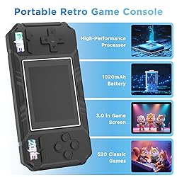 - Handheld Portable Game Console, 520 Retro Video Games, 3.0 Inch LCD Screen and 1020mAh Battery Video Games, Portable Game Console Gift for Boys and Girls
