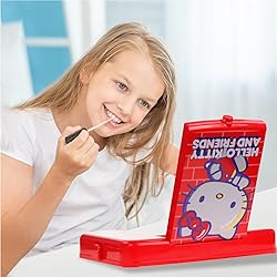- Let your little one glam up with this Hello Kitty and all her adorable friends! This light-up vanity compact opens to reveal a magical world of beauty play, filled with numerous vibrant eyeshadows, blushes, lip glosses, along with colorful, peelable nail polishes. The interior mirror lights up for extra sparkle, making it easy for kids to play dress-up like a star. With fun accessories like a nail file, nail stickers, body tattoos, and nail gemstones, the possibilities for creative looks are endless. Everything stores neatly inside the compact, making it perfect for on-the-go beauty fun, sleepovers, or gifting. Designed with kid-friendly, non-toxic formulas for safe, imaginative play.