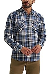 CLASSIC FIT. This classic fit shirt is cut for both practical comfort and clean style. Finished with western-inspired details, it adds a touch of Wrangler style to any outfit. WESTERN STYLING. This jean shirt is designed with traditional finishes — classic western yokes, snap-button closures and Wrangler W stitching on the pockets — for durable functionality and authentic look. QUALITY MATERIALS. Made with comfortable cotton fabric, this snap shirt is the perfect addition to your wardrobe. Great for everyday wear or a night at the bar, this shirt will last for years to come. VERSATILE WEAR. Wear as a work shirt on cooler days or layer with your favorite Wrangler tee for a relaxed look. QUICK-ACCESS STORAGE. Finished with snap buttons, this button-down features (2) front spade snap pockets for easy access.