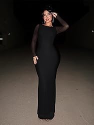 🌸Size: XS=US(2), S=US(4-6), M=US(8-10), L=US(12-14), XL=US(16-18). Model info -Height: 5'7 (170cm, ankle length), Weight: 130 lbs, Bust: 33.5'', Waist: 24.5'', Hips: 37.0'', Wearing S. If you don't like ‘too tight' feeling, we recommend regular; or size up(if you have bigger busts or hips). Please feel free to contact us if you have any issues. We will provide you with a satisfactory solution within 48 hours. 🌸Fabric: This wedding guest dress features a floral sheer mesh overlay with a soft opaque lining for comfort and coverage, while the unlined mesh long sleeve add a delicate, elegant feel. The stretchy, skin-friendly fabric provides a flattering fit, so it’s easy to move and dance in. No zippers. 🌸Spring Dresses for Women 2026: This mesh maxi dress is slim cut design with flared bottom that shows the hourglass body curves for a confident mermaid look. Holds the curves in and shows off the booty! The vibrant purple and green floral print is eye-catching and gorgeous in person. Classy and sleek. 🌸Sexy, Simple, Stunning: These Club & Night Out dresses for women perfectly matched with a variety of shoes. Throw on flats for a casual day or dress it up with heels for dare night. Pair it with nude or metallic heels, a clutch, and simple jewelry to complete the look. You can also add a shawl or jacket for extra warmth during spring cooler evenings. 🌸Perfect for Spring Occasions: Best formal dresses for women, wedding guest dress, cocktail dresses for women, vacation outfits for women, homecoming dresses, birthday dresses for women, party dresses for women, prom dress, graduation dress and so on. Making you feel confident and glamorous. Highly recommend!