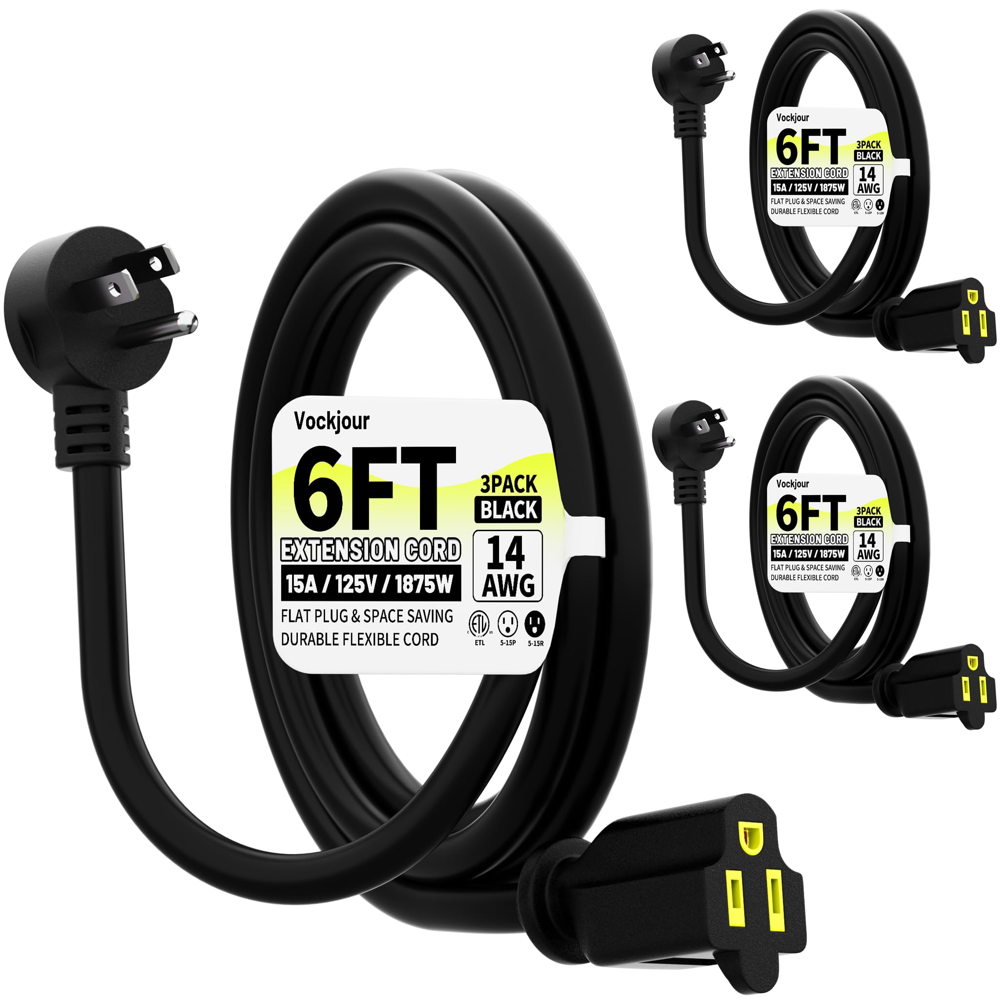 Vockjour 6 ft 14/3 Appliance and Power Tool Cord, 14 AWG 3 Prong Black Heavy Duty Replacement Power Cord with Open End, NEMA 5-15P, 125V AC Pigtail, 15A 1875W, ETL Listed