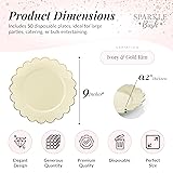 Sparkle and Bash Bulk 50 Pack Scalloped Plates - 9 Inch Ivory Plastic Plate with Elegant Gold Rim - Fancy Disposable Plates for Party, Birthday, Wedding, Baby Shower, Gender Reveal and Holidays