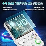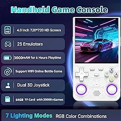 【Upgraded R36 Ultra Retro Game Console】The connectable handheld game console features tons of classic games, built-in storage space, pre-installed with 20,000+ classic games covering a wide range of genres to meet the needs of different players 【HD Screen-4-inch HD IPS Display】: Retro Gaming Console equipped with a 4-inch IPS HD display with a resolution of up to 720x720, vibrant colors and clear details. And dual 3d colorful joystick design,mechanical buttons ,comfortable,3d joystick pressing sensation trigger, you can maintain a comfortable visual experience even during long hours of gaming 【High-performance Processor】: R36 Ultra Powerful Retro Gaming Console, Equipped with 1.5GHz RK3326 64-bit processor and quad-core ARM Cortex-A35 architecture, it can easily cope with a variety of simulators,At the same time, the configuration is more secure, stable and smooth Linux system, so that you have a more stable, secure and smooth gaming experience 【3000mAh Battery& PORTABLE DESIGN】: Mini Video Games Console ,lightweight and portable, suitable for playing anytime and anywhere. Built-in 3000mAh battery with up to 6 hours of battery life, it can meet your entertainment needs whether you are traveling, commuting or daily leisure 【Multi-functional Expansion】:This handheld game console support 20+ emulators, expandable storage space via TF card, connect to TV to enjoy big-screen gaming fun. Built-in stereo speakers and 3.5mm headphone jack for an immersive audio experience