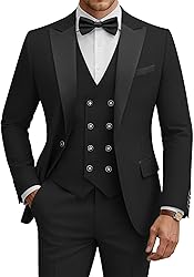WULFUL Men's 3 Piece Suits Slim Fit Tuxedo Suit Set Double Breasted Suit Jacket Vest Pants Set for Wedding Prom