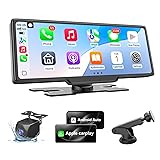 【Transform Your Ride with Seamless Smartphone Integration】Enjoy effortless connectivity with full support for Wireless Apple CarPlay & Android Auto. Instantly sync your iPhone or Android device to access your favorite apps, make hands-free calls, and control music—all through the crisp 10.26" carplay touch screen. Siri/Google Assistant keep your eyes on the road while navigating, calling, or playing podcasts. Perfect for daily commutes or road trips, it’s the smart upgrade your car deserves! 【Stress-Free Navigation & Real-Time Guidance】Never miss a turn with live map updates and voice-guided navigation via Google Maps, Waze, or Apple Maps. Get traffic alerts, lane guidance, and ETA predictions in real time. Unlike basic GPS systems, our carplay screen for car uses your phone’s data for always-accurate routing—ideal for navigating unfamiliar cities, avoiding jams, or finding the quickest coffee stop. Plus, voice control lets you reroute safely while driving. 【Big-Screen Entertainment On-The-Go】Turn your vehicle into a mobile theater! Our 10.26-inch HD car play screen (1600x600) supports screen mirroring for both iOS and Android. Stream high-definition movies or YouTube videos during long drives or while parked. Kids bored on a family trip? Play movies or games directly on the vivid display. Every detail pops—making it your ultimate travel companion for work, play, or relaxation. 【Park Like a Pro with Adjustable 1080P Backup Camera】Reverse with confidence! Our kit includes a 1080P waterproof rearview camera—just connect it to your reverse lights and car screen. When you shift into reverse, Apple carplay screen instantly switches to a crystal-clear view with customizable guide lines. Tight parking spot? Adjust the position of the guide lines for perfect alignment. Works day or night, even in rain—saving bumpers and stress in crowded lots or narrow driveways. 【Eye Comfort Mode & Smarter Screen Management】Reduce glare and eye strain! Our auto-dimming feature adjusts brightness based on ambient light (day/night driving). Set a schedule for “Eye Comfort Mode” to soften the apple car play screen after dark. Screen saver function! You can set the screen to automatically turn off after 10s/30s/1min of inactivity—saving power and reducing distractions. Note: Auto-dimming only works in CarPlay/Android Auto mode for seamless safety. 【Crystal-Clear Sound, Your Way】Flexible audio? We’ve got you covered. Pantalla para carros con bluetooth offers 4 output modes: Stream wirelessly via Bluetooth, plug into your car’s AUX port, transmit via FM radio (no static!), or use the built-in speakers. Perfect for older cars without modern stereos—or for syncing with premium sound systems. Podcasts, playlists, or audiobooks will sound rich and immersive, whether you’re in a tunnel or cruising the highway 【Universal Fit, Easy DIY Install (12V-32V Vehicles)】Works in almost anything on wheels! Apple carplay screen for car is compatible with trucks, RVs, vans, buses, SUVs, and sedans (12V-32V systems). Setup? Simple plug-and-play: Power via the cigarette lighter, mount the car tablet with your choice of 2 included brackets (strong suction cup OR adhesive dashboard base), and connect your phone wirelessly. No tools, no wiring nightmares—upgrade in under 5 minutes! 【Worry-Free Ownership: 1-Year Warranty + 24/7 Support】Drive with confidence! We back your android auto screen for car with 30-day hassle-free returns, a 1-year warranty, and 24/7 customer support. Got questions? Our US-based team responds fast. Carplay radio makes a killer gift for dads, grads, road-trippers, or anyone with an older vehicle. Give the gift of a smarter, safer, more entertaining drive!