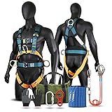 【Multi-Scenario Application】1Close-Range Use – Unclip the carabiner and remove the shock absorber pack to prevent unintended deployment during short-distance tasks. 2.High-Altitude Protection (6m+) – Standard shock pack activates upon falls (>6KN force), absorbing impact to minimize bodily injury. 3.Long-Distance Anchor Setup – For remote anchor points. pair with our 30FT rope for easy deployment. 【Safety Harness Fall Protection Kit】- Engineered for construction, roofing, and industrial work, our versatile safety harness provides reliable fall protection with heavy-duty webbing and reinforced anchor points. 【Durable & Adjustable 】- Features padded shoulder straps, breathable leg loops, and customizable fit for extended comfort during high-altitude tasks. 【ANS Z359.11-2021-Compliant Fall Arrest System】- Meets ANSI Z359.11-2021 safety standards for construction sites (arneses de seguridad para construcción), including shock-absorbing lanyards and quick-connect buckles. 【Multi-Purpose Roofing Harness】- Specialized arneses para roofing harness design with tool loops and rear D-ring for secure positioning on sloped surfaces.