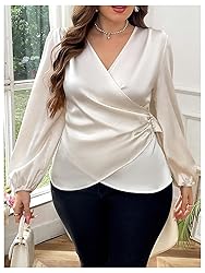 Materials: Fabric is soft and comfortable with no stretch, it keeps you easeful and relaxed all day Features: Plus size, silk satin, beaded, v neck, long sleeve, asymmetric hem, wrap front, dressy blouses for women Match: Perfectly paired with dainty earrings , necklaces, rings, handbags, bootcut pants, high heels Warm Tips: Machine or hand wash with cold water Please select your size according to the Product Measurement in the third image before ordering(Not body size)