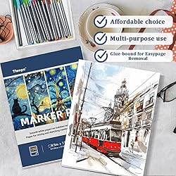 [100 Sheets Marker Paper Pad] A marker sketchbook with 100 sheets, 8.5" x 11"(21.5×28cm) easy to carry, paper weight 73 lb/120gsm. while the double-sided design provides 200 usable pages for extended creativity. The compact size is perfect for studio, outdoor sketching or casual doodling [Professional Marker Paper] Our professional-grade bleedproof sketchbook features a sturdy, Anti-bleed coating prevents 99% of ink penetration, perfect for markers, alcohol markers, water-based markers, gel pens, and fine liners. Studio-grade paper preserves crisp lines and vibrant gradients [Designed for Travel] The 8.5" x 11" marker sketch pad offers the perfect balance of workspace and portability. Features a thick cardboard backing and adhesive binding. When you want to display or frame your work, just remove the pages easily. It is easy to disassemble and its compact size makes it easy to carry. A top choice for travel drawing kits and artists' daily use [Archival Mixed Media Art] The marker pad Specially crafted with acid-free, bleed-proof technology to prevent ink pooling and feathering. Works with pencils, crayons, acrylic paints, and more. Smooth paper enhances the flow of your drawings. Perfect for comic art, sketching, or classroom sketchbook projects [Perfect for Students & Beginners] This high-quality marker paper pad is the perfect gift for anyone who loves watercolor or acrylic painting, such as children, students, and those who create art. Teachers can use this paper as classroom supplies, making it perfect for educational projects, office supplies, or art projects [Tips] It's normal to see the spine and cover separate after you receive the marker notebook. This design allows you to easily tear off the paper after creating your artwork without damaging the notebook