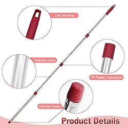 Germany Threaded Joints: This Mop Handle is Compatible with O Cedar EasyWring 1-Tank system and RinseClean 2-Tank System mop bucket and mop head/base and H2pro Flat Mop. Please note, it is Germany Threaded Joints. Before buying, just confirm that our thread head is consistent with your thread head. Adjustable Length Mop Handle for O cedar Spin Mop: With an extendable length from 30" to 58", mop handle can be easily adjusted to suit your height and cleaning needs. No need to bend over or squat while cleaning, making cleaning a breeze. Lightweight Stainless Steel Spin Mop Handle: Spin mop handle replacement is made with Stainless Steel,Compared to normal metal mop handle, the mop stick is more Lightweight and Easy to use. Besides,the surface of the mop handles with Smooth surface to ensure Anti-slip to hold when clean. Easy to Assemble Mop Handle for O cedar Spin Mop: Say goodbye to complicated assembly! One-step connection speeds mop assembly and replacement, just screw the threaded part of the connecting rod into the other rod and tighten it. Enjoy a hassle-free cleaning experience with Ocedar 4 Section Spin Mop Handle Replacement! 4-Section Stainless Steel Mop Handle for Ocedar Spin Mop & H2pro Flat Mop: This mop replace handle are made with lightweight stainless steel material, looks premium, durable & long last of use.
