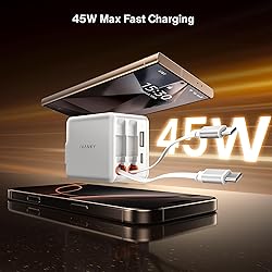 iVANKY Smallest 4-in-1 Retractable GaN Wall Charger for iPhone 17 Air, 45W USB C Charger Block with Dual USB C Cables, Fast Charging Samsung, 4-Port Adapter for 16/15/14 Pro Max, AirPods Pro 2/3