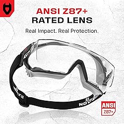 CLEAR LENS NO MATTER WHAT — Tough lens coatings defend against scratches, fog, and 100% of UV rays. Ideal for labs, dusty jobsites, or long shifts where reliable eye protection is non-negotiable. LONG LASTING PROTECTION — Durable polycarbonate panoramic lenses meet ANSI Z87.1 impact standards, delivering a distortion-free field of vision no matter the task. CUSTOM FIT COMFORT — Comfortable, flexible fit with TPR seals, pivoting buckles, and a wide soft strap. All-day wear without pressure points. EYEWEAR-FRIENDLY DESIGN — Special frame slots and accordion sides let these goggles fit over prescription glasses without fuss. LIFETIME RELIABILITY — Covered by NoCry’s warranty for defects in materials or workmanship.