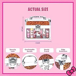- Hello Kitty Mini Train Case: Unleash the Magic of Imagination! Delight your little princess with the enchanting Hello Kitty Mini Train Case! This adorable set is designed to inspire creativity and let the inner beauty queen shine through.includes two delightful lip balms, two shimmering lip glosses, and a stylish compact gloss, this compact train case is the perfect gateway for your child to explore the whimsical world of fashion and fun.Safety is our top priority—each cosmetic product is crafted with a non-toxic, water-based formula, ensuring a secure and enjoyable experience for your child. Watch as she dives into a world of colors, textures, and personal style, allowing her imagination to run wild! Surprise your little one with the perfect gift for any occasion—be it a party favor, Christmas surprise, back-to-school treat, or a special celebration. With the Hello Kitty Mini Train Case, every moment becomes a magical journey into the world of beauty and self-expression. Grab one today and let the adventures begin!