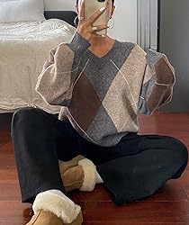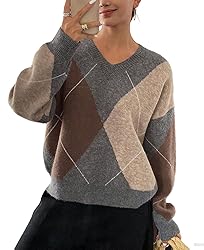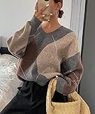 Size Guide: XS=US 0-2, S=US 4-6, M=US 8-10, L= US 12-14, XL=US 16-18, XXL=US 20-22. Please check the "Size Chart" before ordering, if you are not sure about the size, please contact us without hesitation Trendy 2025 fall sweater for women, featuring contrast color block diamond pattern, chic and classic; Long sleeve pullover sweater v-neck, rib knit cuff & straight hem, cozy sweater can keep you charming and comfy all day Jacquard knitted oversized cardigan sweater, which can perfectly fit different body types. This vintage sweater is made of soft and premium knitting material, offer you excellent wearing feelings; Beige grey/ brown grey/ apricot blue/ red grey/ black grey available Easy to match: Business casual sweater tops in loose fit, easily to be worn on its own or layered with coats, pair with jeans, leggings, skirts, boots or high heels for a fashion street look; Casual sweater top/ Elegant sweater/ Warm sweater/ bukly sweater/ fair isle sweater/ Christmas ugly sweater Occasions: Color block sweater is perfect for daily life, streetwear, going out, lounging, shopping, dating, vacation, work top, night out, holiday gifts, home, etc. Chunky sweater/ knitted comfy sweater/ cozy sweater/ retro sweater