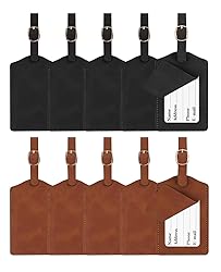 Quuztao 10 Pack Leather Luggage Tags for Suitcases, Leather Luggage Tags with Privacy Cover(Black+Brown)