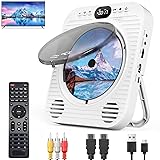 Dual-Function CD/DVD Playback: This compact device combines a CD player and DVD player into one easy-to-use unit. Compatible with multiple formats including DVD, CD, VCD, SVCD, and MP3. A great solution for anyone seeking a CD DVD player for TV or everyday home audio needs. 𝐍ote: 𝐃o not support blu-ray dics! Wireless Streaming with Bluetooth 5.3: Enjoy your music wirelessly thanks to the upgraded Bluetooth 5.3 chip. Seamlessly pair with your phone. AUX IN and AV OUT also available for traditional wired connections HDMI DVD Player for Stunning Visuals: Connect via HDMI for full 1080P upscaling and enjoy sharper images on your smart TV or projector. Includes both HDMI and AV cables to support a wide range of setups—from modern flatscreens to older displays Modern Design Fits Anywhere: Use it freestanding on a table or mount it vertically on the wall—this slim, stylish DVD CD player is made to blend in with any space. Ideal for bedrooms, kitchens, dorms, or small apartments Everything Needed in One Box: Includes remote control, AV and HDMI cables, and a wall-mount kit. With built-in stereo speakers and support for USB media playback, it's ready to function as a standalone portable CD player or TV-connected DVD player Setup Tip Before Use: Kindly remove the protective insert inside the disc compartment before powering on, to prevent operational noise or playback issues