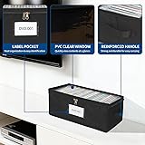 ComfortKeeper 4 Pack Durable Fabric DVD Storage Box with Clear PVC Lid, Holds 25 Standard DVD Cases, Sturdy Non-Woven Fabric with Cardboard Support for Movie Collection, Black