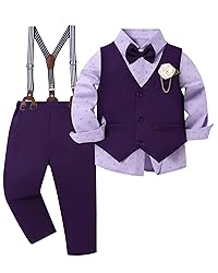 6-Pieces Formal Suit Set: This toddler suit including 1PC long sleeve dress shirt+ 1PC vest + 1PC suspender pants + 1PC detachable bow tie + 1PC elegant boutonniere. Material: Made of great cotton blend fabric, soft and breathable, and skin-friendly for your little boy. Design: Toddler boy dress clothes, classic color matching detachable bowtie and suspender pants. You'll never worry about how to match your cute boy! Occasion: The boys suit are designed for wedding, Easter, baptism, party, church, cocktail, birthday, Christmas, Thanksgiving, Valentine's Day, Halloween etc. Size: 18-24 months boy suits, toddler suits for boys 3t, toddler wedding outfit boy 4t, toddler boy dress outfits 5t, boys formal suit 6t, boys suit size 8