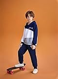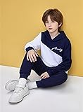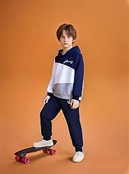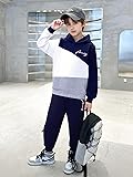 High quality comfortable fabric, skin friendly and durable: Selected high-quality blended cotton fabric, skin friendly and soft, breathable and sweat absorbing, gently caring for children's delicate skin. The fabric is durable and wrinkle resistant, able to withstand the test of daily activities and playful play, ensuring long-lasting comfort and style, suitable for boys to wear all day in spring and autumn. Cool color blocking, full of vitality: The top adopts a bold color blocking design, which sparks street fashion inspiration with contrasting colors. The personalized letter print on the chest is eye-catching and instantly enhances the overall fashion sense. Simplicity is not simple, trendy and stylish: the top comes with a comfortable hood, windproof and warm. Paired with the same series of letter printed pants, the solid color highlights the texture, and the letter embellishment is full of trendy fun. Both the top and pants are designed with a drawstring, which is windproof and warm, allowing your boy to play with a sporty style cleanly. Versatile set, easy to handle multiple occasions: This well matched set is the perfect choice for school, play, birthday parties, family gatherings, or holiday celebrations. Free from the hassle of matching, it is an excellent gift for boys to wear immediately, making him look particularly trendy and stylish in any occasion. Value set with multiple size options: The set includes a hooded long sleeved top and a pair of pants, suitable for daily wear by boys aged 6-12.