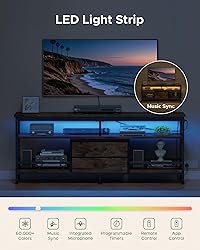 More Than Just a TV Stand: Lazzanto's 63 in. TV stand holds TVs up to 65 in., offering plenty of storage for your media, books, and decor. Keep your living room tidy and organized, whether it's movie night or family gaming day Reliable Support for Big Screens: Keep your TV steady while binge-watching with thick panels and reinforced metal joints that hold up to 150 lb. Removable side crossbars add style and safely store remotes, books, DVDs, and other essentials Keep Everything Plugged In: Power up your entertainment center with 4 AC outlets, 2 USB-C ports, and 2 USB-A ports built right in. The flexible hub can go on the left, right, or be removed, keeping your devices fully charged and your space organized Your Movies Deserve Mood Lighting: Light up your entertainment zone with RGB LEDs that match every mood. Choose from 12 scenes, 5 speeds, and 3 brightness levels, or use the app to explore 60,000+ colors and even sync lights to your favorite tunes From Box to Living Room in No Time: Our TV stand with drawers includes all necessary tools and instructions, so you can enjoy your TV setup without frustration, plus expert support is available anytime you need it