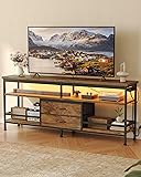 Lazzanto 63 Inch TV Stand, Entertainment Center for 55 to 75 Inch TVs with LED Lights & Removable Charging Station, Modern Media Console Table with Open Storage Shelves & Fabric Drawers, Rustic Brown