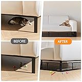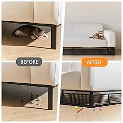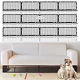 STRUDR MATRIAL:These under-sofa blockers are made of solid plastic, durable, removable, flexible, and not easily deformed. They are very suitable for blocking pets or toys from entering under the sofa, providing comprehensive protection PRECISION SIZE & L-SHAPED DESIGN: Featuring an elegant lattice pattern, these couch guards for under couch include 12 connectable L-shaped panels (14.5"L x 4.7"W x 6.5"H each)and 30 Tiesmeet that fit furniture with over 6.5" clearance while maintaining décor aesthetics QUICK & EASY INSTALLATION: Simply slide this under sofa blocker into place - no tools or adhesives required. The non-slip design protects floors while allowing for easy removal. Panels are stackable for compact storage and clean effortlessly with water STABLE And Non-SLIP STRUCTURE: Thickened L-shaped baffle design fits the bottom of the furniture and is not easy to move; the non-slip texture on the bottom ensures that it does not slip during use, and it is not easy to fall off when pets or children collide. EASY TO CLEAN:Our sofa baffle can be disassembled and rinsed with water or wiped with a wet rag to create a clean living environment. When you are not using it, it can be folded and stacked in the corner without taking up too much space