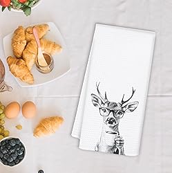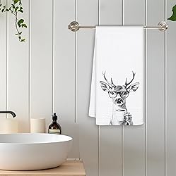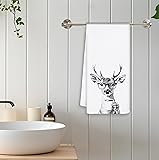OSLYSOF Funny Deer Kitchen Towels, Deer Gifts for Women Men Dish Tea Towels, Black and White Animal Lover Gifts Hand Towel for Kitchen, Coffee Bar Station Decor, 16x24 Inch