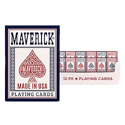 Maverick Playing Cards 12 Pack, Made in USA, New and Improved Quality, Standard Index, Red and Blue Decks, Bulk Playing Cards for Poker, Card Games, and Family Game Night
