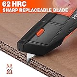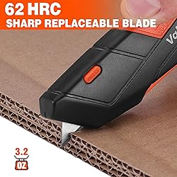 One-Touch Quick Retraction: Press the handle to swiftly extend the blade; release to retract instantly. The blade features three cutting depth settings—shallow, medium, and deep—adapting to various tasks. Designed for safe use by workers, teachers, students, and more Rapid Blade Change: Includes 36 double-sided SK5 durable blades, with space for 3 spares stored inside the handle. A simple press enables easy replacement, ensuring the blade stays sharp at all times Sharp & Lightweight: Crafted from rust-resistant powder-coated aluminum alloy, robust yet weighing only about 3.2 oz, and tested to withstand drops from 1.5 meters. With a blade hardness of 62 HRC, it cuts effortlessly through cardboard, plastic straps, hemp rope, carpet, wires, PVC materials, and leather Ambidextrous Design: Dual-sided blade guide allows precise, smooth cutting for both left- and right-handed users. The blade automatically locks after each cut. The ergonomic handle ensures a comfortable, secure grip Safe & Portable: Equipped with a clip and 180° rotating lanyard system for secure attachment to clothing, preventing loss. Includes a blade guard to avoid accidental contact. The set contains 4 utility knives, 36 blades, a blade guard, and a lanyard