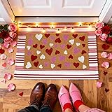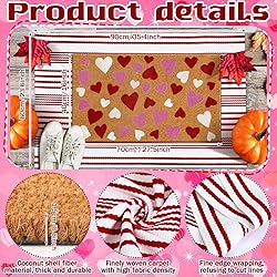Valentine's Day Doormat Set: package includes 1 Valentine's Day door mat with happy valentine heart patterns and 1 red white stripe carpet, simple and classic, providing a combination that adds an enchanting farmhouse style touch to your space Suitable Sized: Valentine's Day doormat sets measuring 16 x 23.6 inches (40 x 60 cm) and 27.5 x 43.3 inches (70 x 110 cm) respectively, the Valentine's Day welcome mat and plaid rug are the ideal size to fit outdoor, hallways, or living spaces; They are large enough for practical use while also compact enough for aesthetic appropriateness Quality Materials: Valentine's Day doormats constructed from coconut fiber, the heart doormat offers durability and weather resistance, making it a good choice for an outdoor mat; The plaid rug is made from a blend of cotton and synthetic fibers, known for their soft yet robust qualities; Together, these Valentine's Day mats will become a long lasting fixture of your home decoration Versatile Functional: these Valentine's Day mats aren't just nice to look at, they are also highly useful; Boasting non slip capabilities, they will keep your spaces safe and slip free; They can be applied as front porch rugs for layering, shower mats, bathroom mats in your bathrooms, in your living rooms, kitchens, dining rooms, bedrooms, laundry rooms, bars as well as outdoor patios Ideal Gift: this entrance door mat is suitable for indoor, outdoor and other home environments, it is both practical and decorative, it can be applied to wipe up water stains on the bottom of your shoes or mud when it rains, it's a suitable gift for family, friends, neighbors and so on