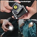 6 Modes : Our hard hat light outperforms traditional lighting choices, featuring 5 practical modes (Strong Spot Light, Strong Flood Light, Weak Spot Light, Weak Flood Light, and Red & Blue Light Strobe) Detachable headlamp : This headlamp offers flexible usage beyond just head-wearing—it’s fully detachable for standalone use. When you don’t want to wear it on your head, simply take it off and clip it onto your jacket, shirt pocket, or backpack strap. Magnetic Attachment Feature : The main body of the headlamp features a built-in magnet on its back, adding even more versatility to your lighting setup. Simply attach it to any metal surface—like a car hood while repairing, a tent frame at camp, or a toolbox in the garage. IPX5 Waterproof : Equipped with an IPX5 waterproof rating, this headlamp stays protected against rain and snow. It works reliably both indoors and outdoors, making it a top pick for anyone who loves outdoor activities. Adjustable headlamp strap: This head flashlight features a comfortable elastic headband, easily adjustable in length to fit heads of all sizes—ideal for both adults and kids. Wide Usage : This hands-free headlamp fits a wide range of scenarios, ideal for outdoor activities like camping, hiking, climbing, cycling, night fishing and dog walking. It also works great for indoor or work needs such as car repairing, DIY work and night reading. With its waterproof design, you won’t have to worry about sudden rain or snow, making it a must-have gear for outdoor lovers. It keeps you from stumbling in the dark, serving as a reliable assistant for both daily use and emergency situations. 90° Adjustable Headlamp : This LED camping headlamp features 90-degree downward adjustment, letting you easily direct light to your desired area—perfect for tasks like reading, repairing, or navigating rough terrain.