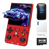 【R36 Max New System】The handheld game console adopts open source Linux game system with good stability, which enables it to provide provides a more responsive and smoother experience. Pre-installed with thousands of games, and TF card independent system and game storage design allows for adding more games 【Massive Game Library & 64GB Storage】Dive into instant nostalgia with the R36Max! This R36Max handheld game console comes loaded with thousands of iconic games – from action and puzzles to epic adventures. It supports over 30 emulators and has a large 64GB TF card for the vast game library—no internet required 【Crisp 4.0-Inch IPS HD Display】This retro gaming console is equipped with 720*720 resolution 4.0-inch IPS fully laminated screen, providing clear picture quality and better eye protection. It ensures that nothing goes wrong at different angles. Meanwhile dual 3D joysticks give you a better gaming experience 【Portable Design with 4000mAh Battery】This R36MAX game console takes you back to a filled with laughter and surprises. 4000mAh Battery with portable design, it delivers up to 6 hours of playtime, take your games anywhere, relish unint. Brings lots of joy and happiness to you during a trip or a long journey 【Perfect Gift for All Ages】This R36MAX handheld emulator is an ideal present for family and friends on birthdays, Christmas, New Year etc. The interactive entertainment of the game competition brings more laughter and happiness to the whole family