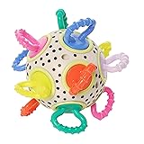 BABY GRASPING SENSORY TOY: Part of our innovative collection of engaging baby toys, the Click Clack Colorpop will contribute to motor skill development, auditory stimulation and spacial perception as little one practices reaching, grasping and clutching for this exciting baby toy, further enticed by the gentle cascading rattle noise in the center. ARTFULLY CRAFTED BABY ACTIVITY BALL TOY: Produced with bright colors with a black and white polka dot pattern in the center to capture baby's attention, this version of the Click Clack baby toy features artfully designed rotating handles that click with each turn and are made from baby-friendly plastics that kids will instinctively gnaw as they explore the ball. CAUSE AND EFFECT WITH TACTILE QUALITIES: Click Clack Colorpop's firm body with flexible plastic handles offers a variety of textures for tactile play, blended with opportunity for cause and effect discovery from moving the ball and turning the handles to create sound. SAFETY RATED GIFT FOR BABIES AND TODDLERS: A practical and thoughtful baby shower gift, this toy for infants passes all appropriate safety tests for newborns and toddlers, including EU restrictions on BPA in toys intended to be mouthed. Baby toy ships in clear, sealed polybag; toy measures 4.5" in diameter; clean with baby pacifier/baby toy wipes (not included; follow manufacturer's instructions). STANDING BY OUR BRAND: If you're reading this, you've found a safe toy from a real company and a brand that cares. Since 1978, Manhattan Toy has been a trusted source of imaginative toys for babies, toddlers and kids of all ages. All of our toys are rigorously safety tested and every toy has our 800 number with a dedicated customer support team to answer your call.