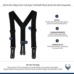 Welch Men's Big & Tall 2 Inch Super Tuff Stuff Y-Back Button On Work Suspender