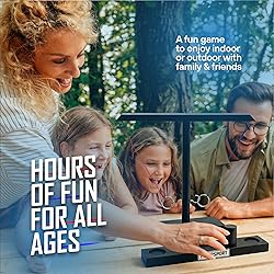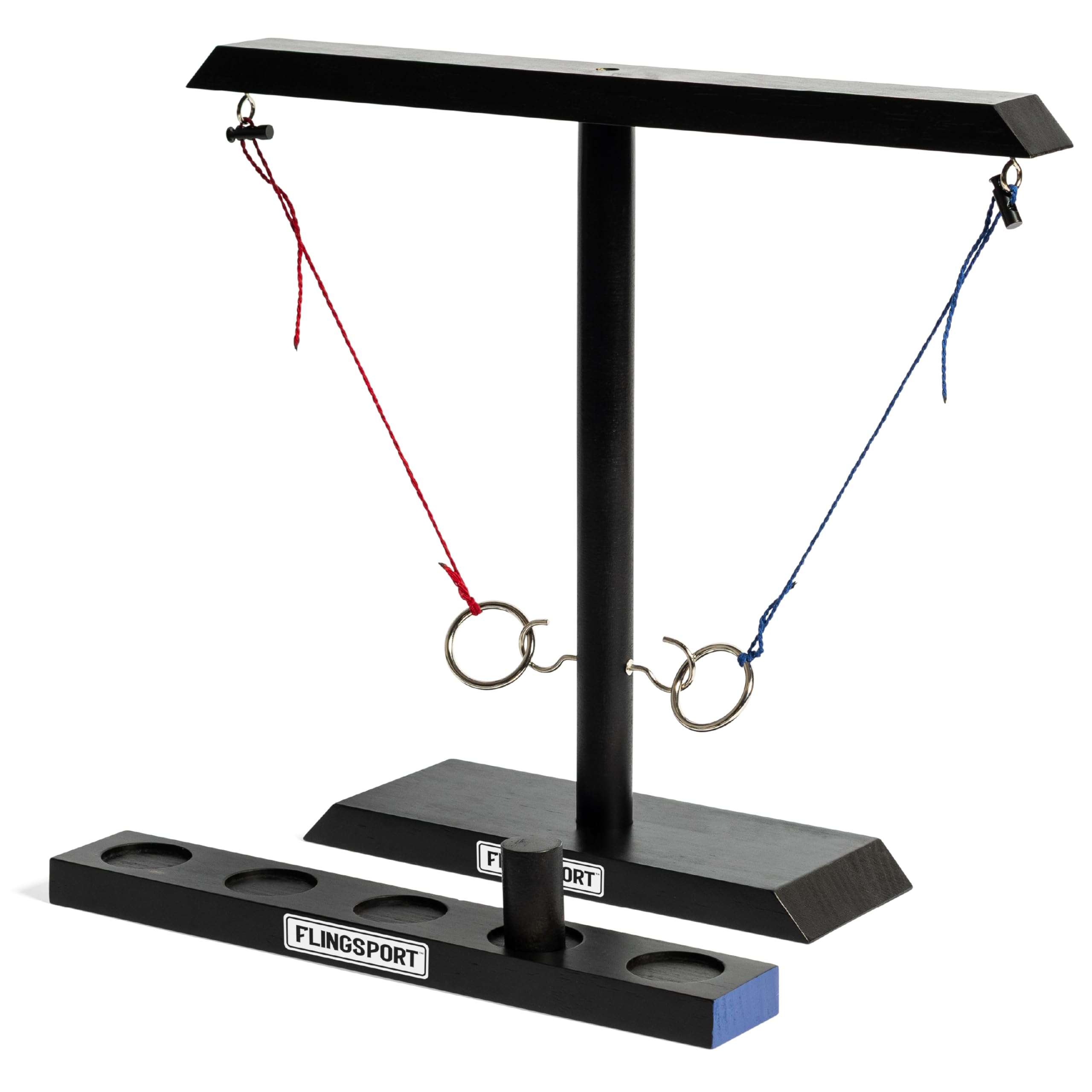 PERFECT CHRISTMAS GIFT: Bring energy and laughter to any gathering with the FLINGSPORT must-have tabletop hook and ring toss game. A perfect Christmas, birthday, or housewarming gift for adults and teens, Boys and Girls, ideal for game nights, family fun, or casual hangouts that turn competitive in seconds. COMPLETE GAME SET: Includes everything you need for instant fun: a premium high-quality wooden hook and ring base, a double-sided scoreboard for two game modes, an Allen key for quick setup and secure assembly, and an easy-to-follow game and setup manual. CRAFTED FOR STYLE & DURABILITY: Built from solid, high-quality wood with precision-cut details, reinforced metal hardware, and durable red and blue strings for a bold, eye-catching finish. The sleek black design delivers a clean, modern look that fits seamlessly on any table, bar, or backyard setup, engineered to last through countless games and good times. BUILT FOR PARTIES & FRIENDLY COMPETITION: Whether it’s a Christmas party, backyard BBQ, garage game night, or picnic, this game instantly turns any space into a mini arena. Great for one-on-one challenges or group tournaments, fun, engaging, and endlessly replayable. FAST-PACED & ADDICTIVELY FUN: Easy to learn but hard to put down! Players take turns aiming for the hook, racing to score points, and celebrating every win. Perfect blend of skill, speed, and laughter—guaranteed to keep everyone entertained for hours.