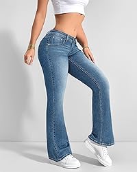 Stretch Denim: This low-rise flare jeans provide a comfortable and flattering fit that sits perfectly at your waist for a smooth silhouette without feeling restrictive
