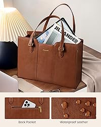 LOVEVOOK Laptop Bag for Women - Waterproof Work Bag for Women & Vintage Laptop Tote Purse with Wristlet
