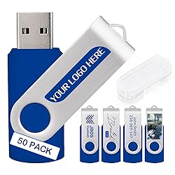 50 Pack Custom USB Flash Drives 2GB USB 2.0,Bulk Personalized Thumb Drives with Logo for Business, Events, Text or Image Printing, JBOS Customized Memory Sticks-Royal Blue